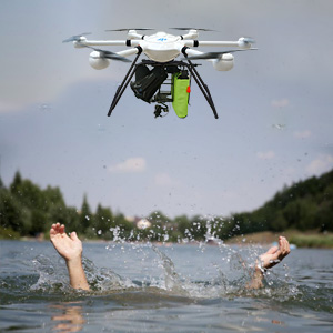 2. 水域救援 無人機可搭載四合一掛載或二合一掛載,在水域事發(fā)現(xiàn)場可以通過定位到落水者,通過喊話器安撫當事人,還可投擲救生包,并同時查看現(xiàn)場情況,輔助救援隊開展緊急救援。 |