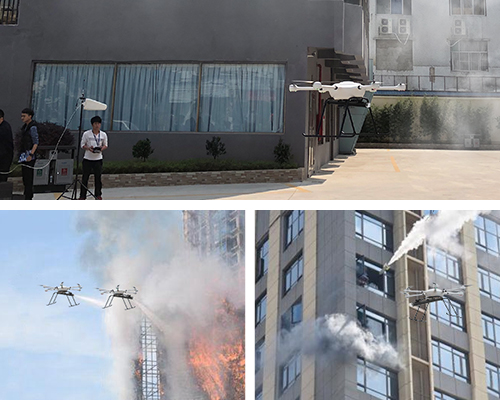 國內(nèi)外高層建筑火災(zāi)多有發(fā)生,即使有充足精良的消防器材裝備,比如消防車云梯,也因?yàn)楦叨认拗疲鴽]有及時(shí)控制火災(zāi)進(jìn)而難以撲滅,最終造成生命和財(cái)產(chǎn)的損失。通過T60無人機(jī)搭載泡沫滅火系統(tǒng)和高清攝像機(jī),利用其飛控系統(tǒng)的優(yōu)勢,在1分鐘時(shí)間內(nèi),可以攜帶泡沫滅火掛載飛行至60-100米的高樓上,利用ABC干粉滅火彈滅火,達(dá)到在消防隊(duì)員抵達(dá)前的快速滅火的效果,同時(shí),通過攝像機(jī)的圖傳系統(tǒng)回傳的畫面,可以迅速觀察火災(zāi)情況,予以決策判斷。