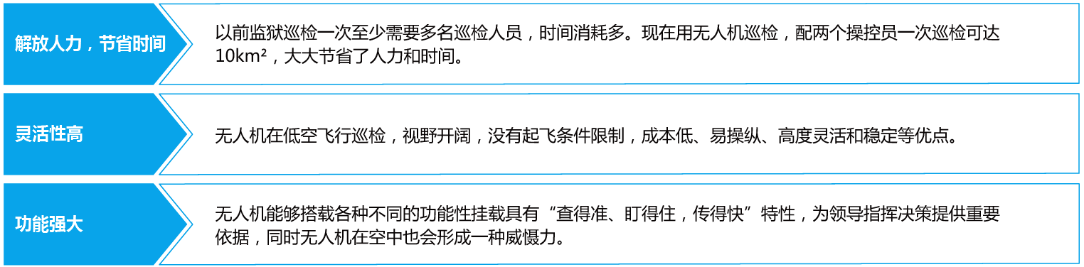 隨著時(shí)代飛速發(fā)展,伴隨著電子技術(shù)、通訊技術(shù)和飛控技術(shù)的不斷進(jìn)步,加上目前建設(shè)智慧監(jiān)獄是以后的趨勢。無人機(jī)是新興的科技化產(chǎn)品,具備多種應(yīng)用性功能,進(jìn)而利用無人機(jī)來為建設(shè)智慧監(jiān)獄的工作也會越來越廣泛。